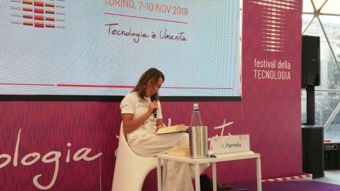 La scrittrice Valeria Parrella guida il pubblico del Festival alla scoperta del mito di Prometeo, che fece dono della conoscenza agli uomini e che oggi da il nome allo spazio di incontro al centro del cortile del Politecnico
